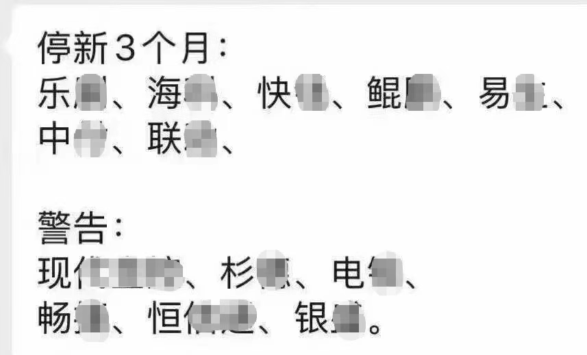 - 90天暂停新增名单:乐X、海X、快X、鲲X、易X、中X、联X